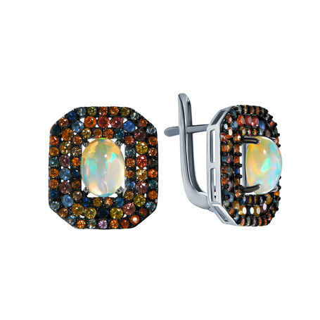 Серьги из серебра 925 пробы с опалами и сапфирами