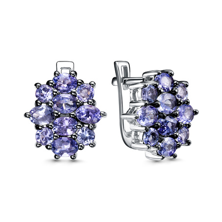 Серьги из серебра 925 пробы с сапфирами и танзанитами