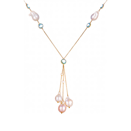 Колье из серебра 925 пробы с барочным жемчугом и топазами