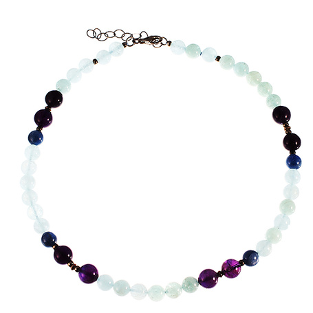 Колье из серебра 925 пробы с кианитами, халцедонами и аметистами