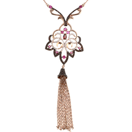 Колье из серебра 925 пробы с авантюринами синтетическими, родонитами, ониксом, фианитами и жемчугом