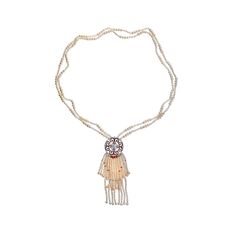 Колье из серебра 925 пробы с жемчугами, фианитами и агатом