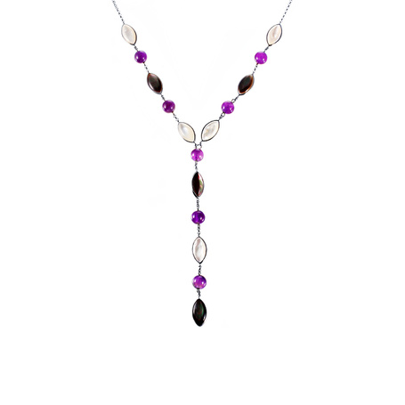 Колье из серебра 925 пробы с аметистами и перламутром
