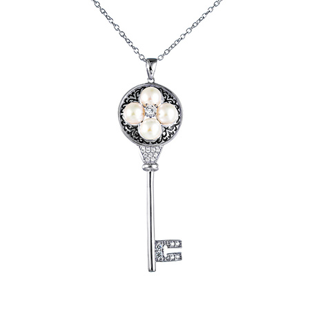 Колье из серебра 925 пробы с жемчугом и фианитами