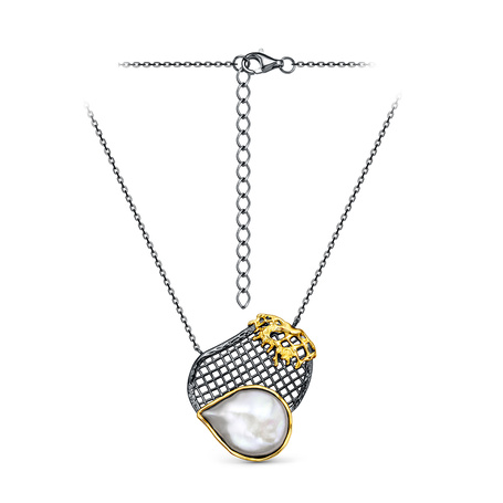 Колье из серебра 925 пробы с барочным жемчугом