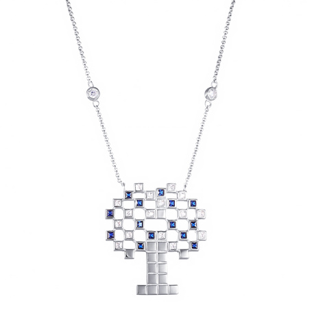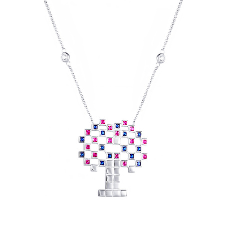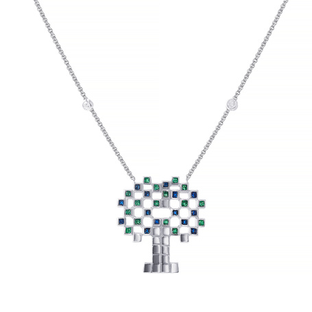 Колье из серебра 925 пробы с фианитами и ювелирным стеклом