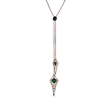 Колье из серебра 925 пробы с агатом, фианитами и эмалью