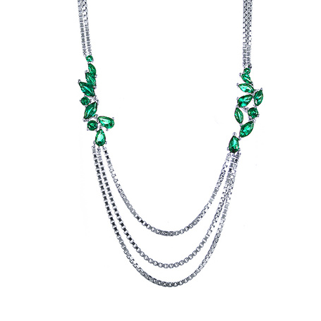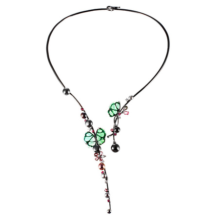 Колье из серебра 925 пробы с фианитами и ювелирным стеклом