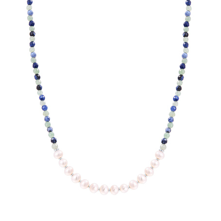 Колье из серебра 925 пробы с агатом, содалитами и жемчугами