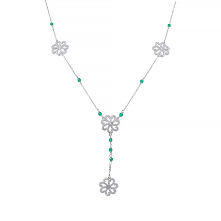 Колье из серебра 925 пробы с агатом, фианитами и эмалью