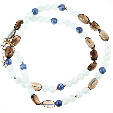 Колье из серебра 925 пробы с аквамаринами, раухтопазами и кианитами