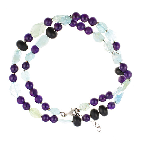 Колье из серебра 925 пробы с аквамаринами, аметистами и ониксом