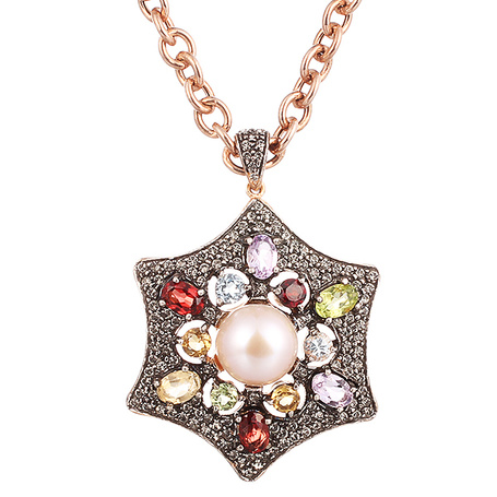 Колье из серебра 925 пробы с гранатами выращенными, жемчугом, перидотами, топазами, цитринами, аметистами и фианитами