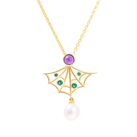 Колье из серебра 925 пробы с аметистами, фианитами и жемчугами