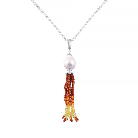 Колье из серебра 925 пробы с цитринами, авантюринами синтетическими и жемчугами