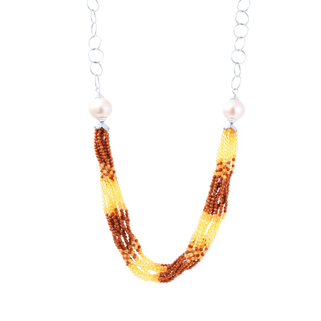 Колье из серебра 925 пробы с цитринами, авантюринами синтетическими и жемчугом