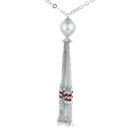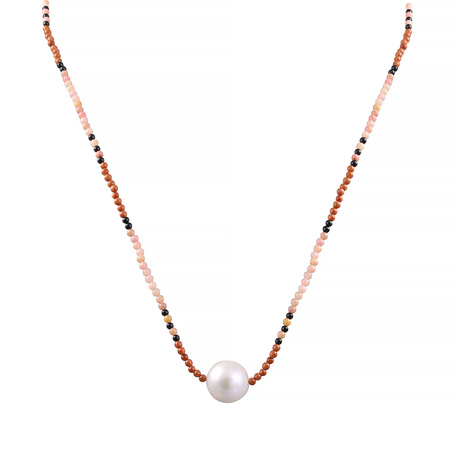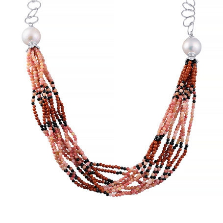 Колье из серебра 925 пробы с авантюринами синтетическими, родонитами, ониксом, фианитами и жемчугом