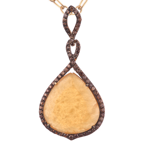 Колье из серебра 925 пробы с кальцитом и фианитами
