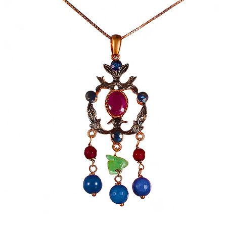 Колье из серебра 925 пробы с корундами, агатом и фианитами