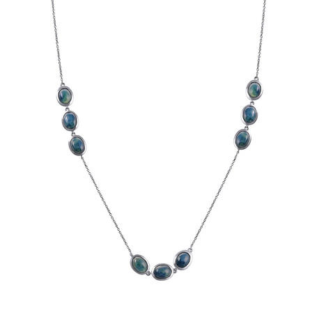Колье из серебра 925 пробы с агатом, кианитами, корундами и жемчугами