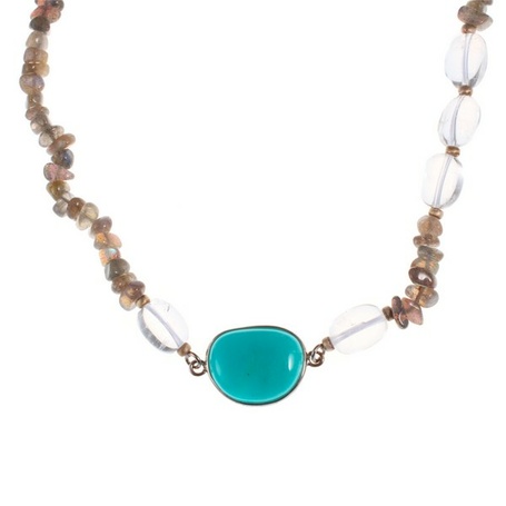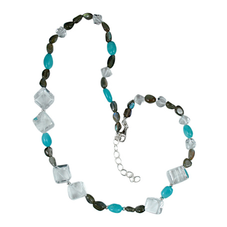 Колье из серебра 925 пробы с амазонитом, лабрадоритами и кварцем