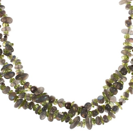 Колье из серебра 925 пробы с лабрадоритами и перидотами