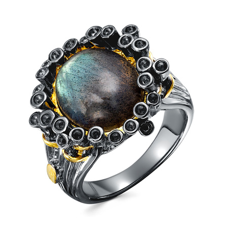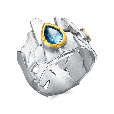 Кольцо из серебра 925 пробы с топазами и эмалями