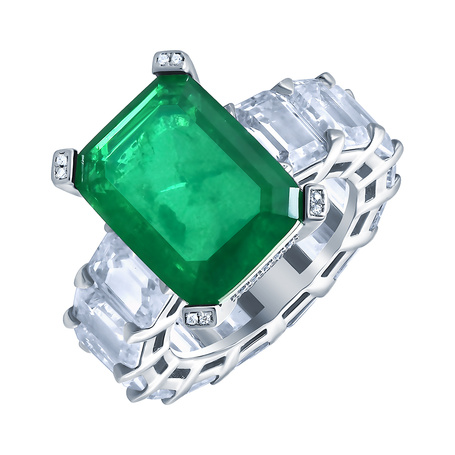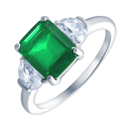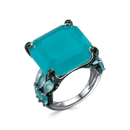 Кольцо из серебра 925 пробы с фианитами и ювелирным стеклом