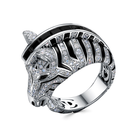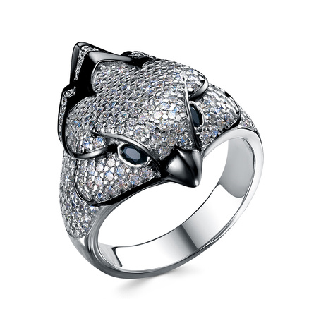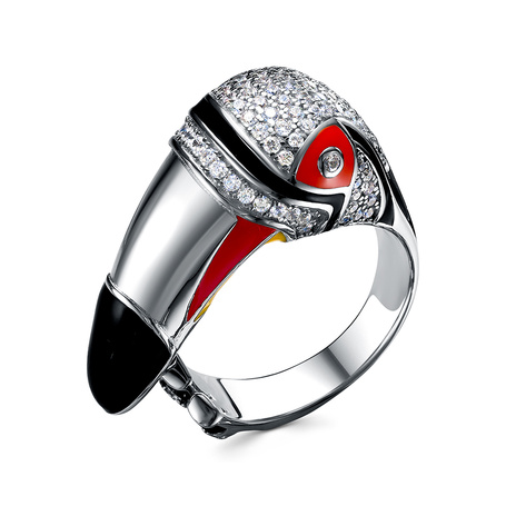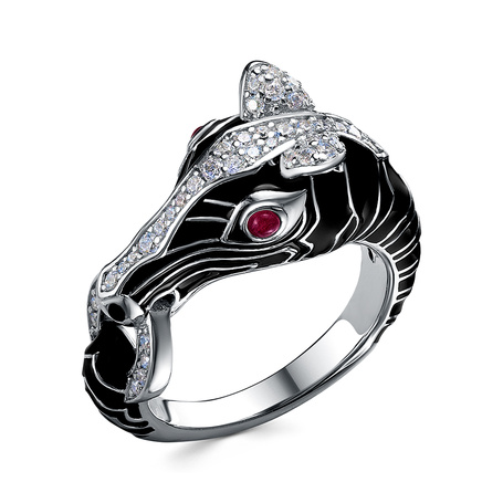 Кольцо из серебра 925 пробы с фианитами и эмалью