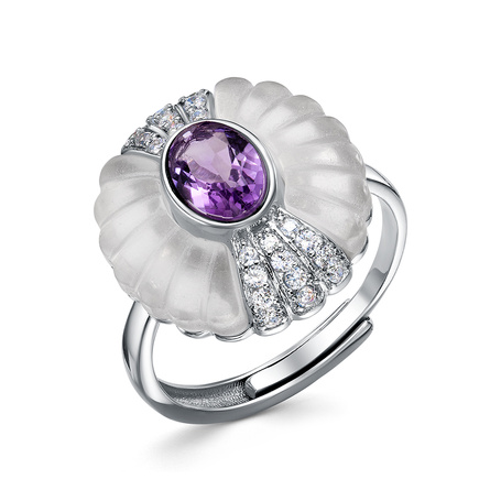 Кольцо из серебра 925 пробы с фианитами, аметистами и кварцем