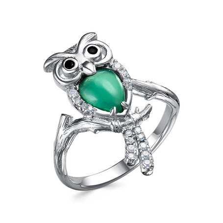 Кольцо из серебра 925 пробы с агатом и фианитами