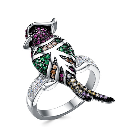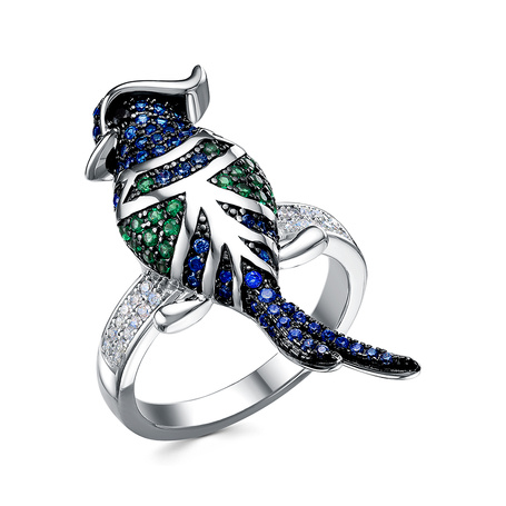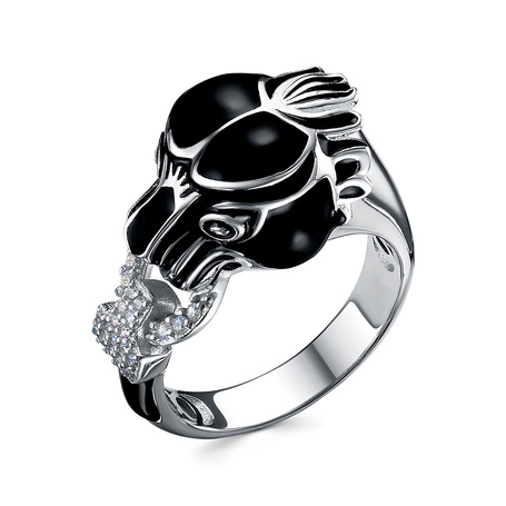 Кольцо из серебра 925 пробы с эмалью и фианитами