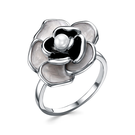 Кольцо из серебра 925 пробы с жемчугом майорика и эмалью