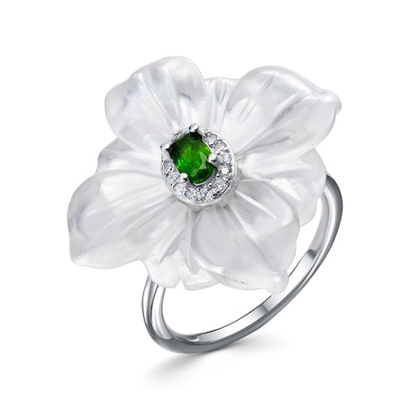 Кольцо из серебра 925 пробы с фианитами и кварцем