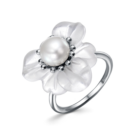 Кольцо из серебра 925 пробы с жемчугами речными и кварцем