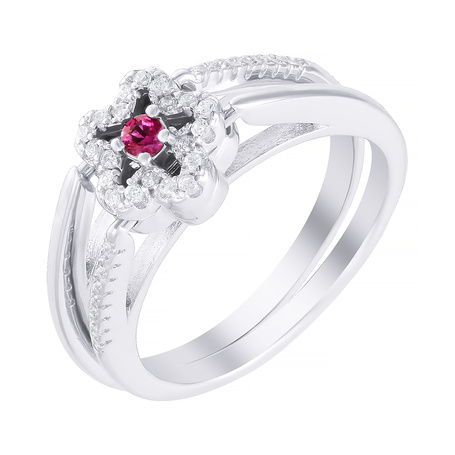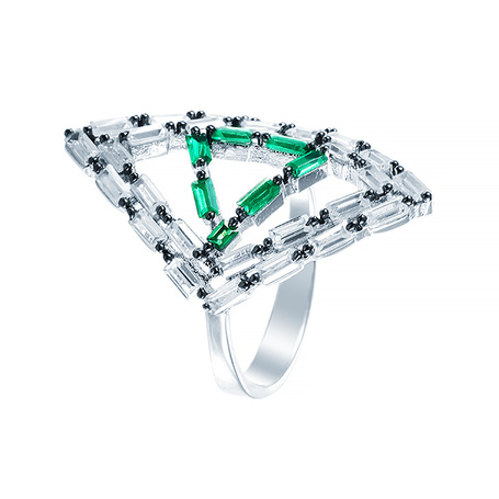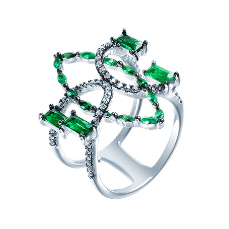 Кольцо из серебра 925 пробы с фианитами и эмалью