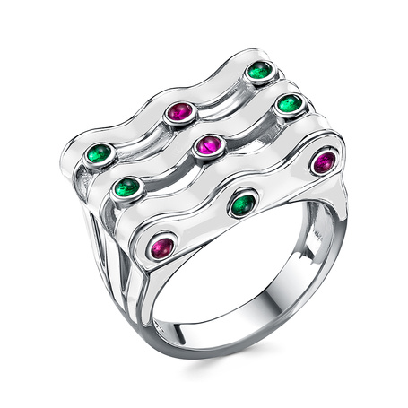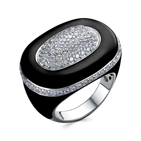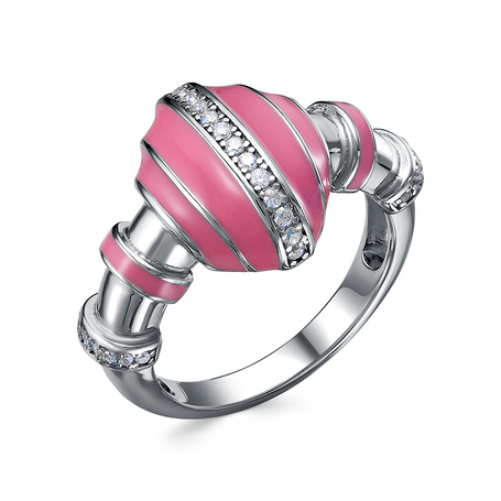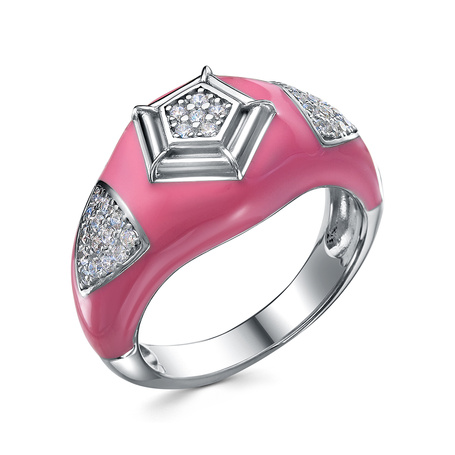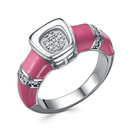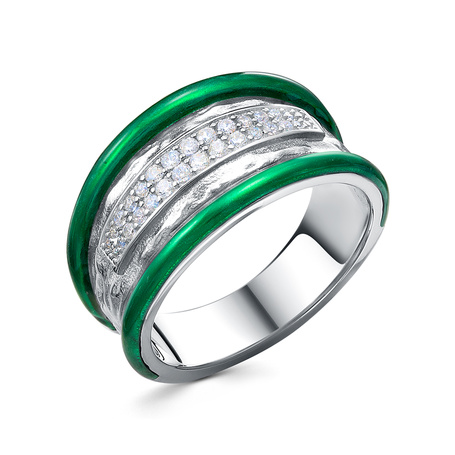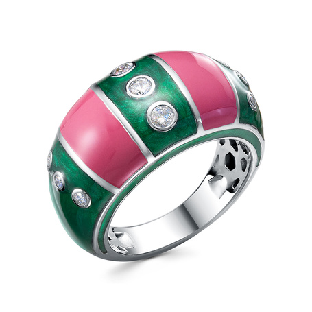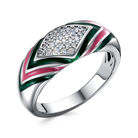Кольцо из серебра 925 пробы с фианитами и эмалью