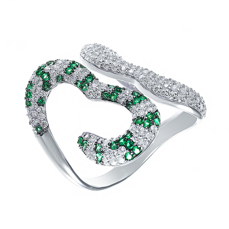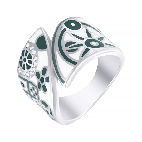 Кольцо из серебра 925 пробы с фианитами и эмалью