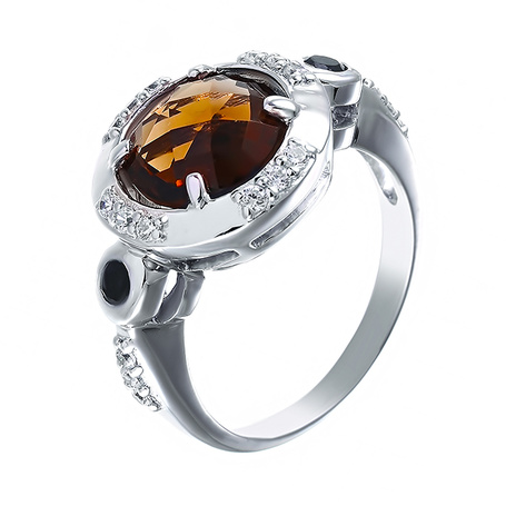 Кольцо из серебра 925 пробы с раухтопазом и фианитами