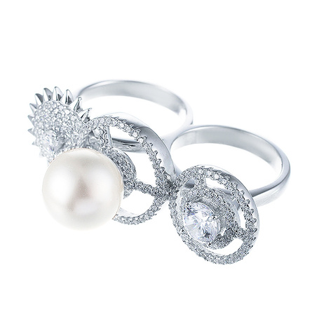 Кольцо из серебра 925 пробы с фианитами и жемчугами