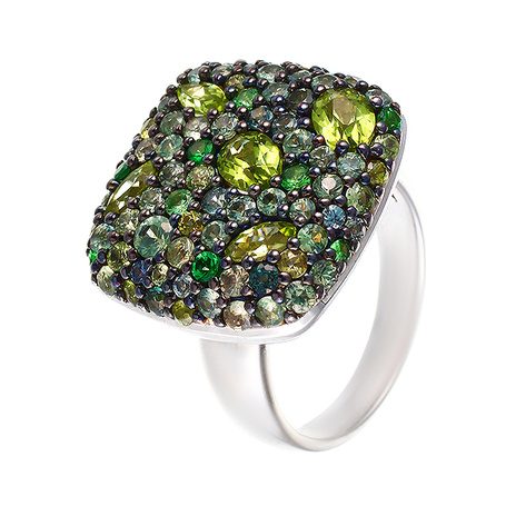 Кольцо из серебра 925 пробы с перидотами, сапфирами и цаворитами