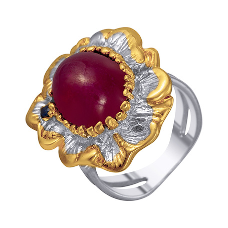 Кольцо из серебра 925 пробы с рубином, сапфирами и цаворитами