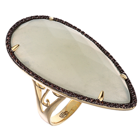 Кольцо из серебра 925 пробы с жадеитом и фианитами