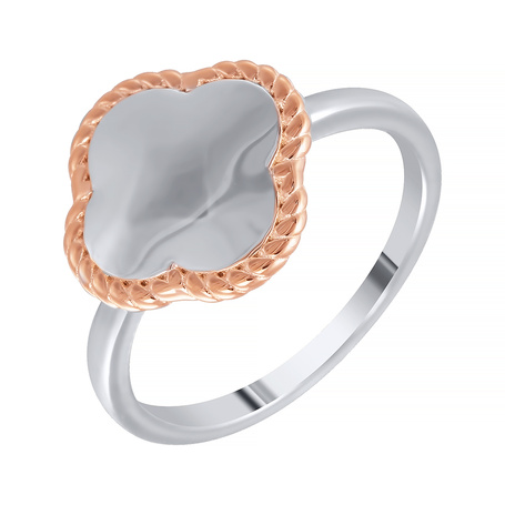 Кольцо из серебра 925 пробы с перламутром и ониксом клевер
