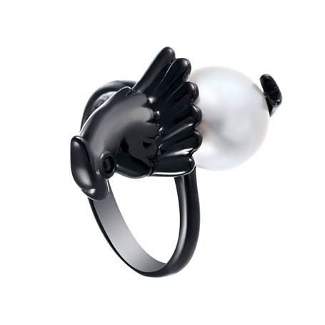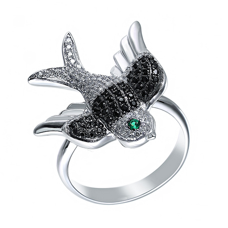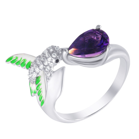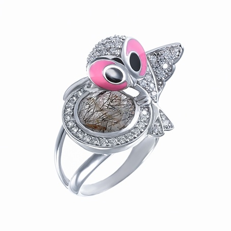 Кольцо из серебра 925 пробы с кварцем, фианитами и эмалью