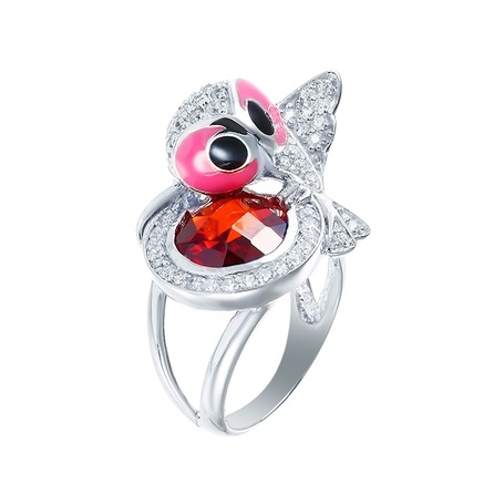 Кольцо из серебра 925 пробы с гранатами, фианитами и эмалью