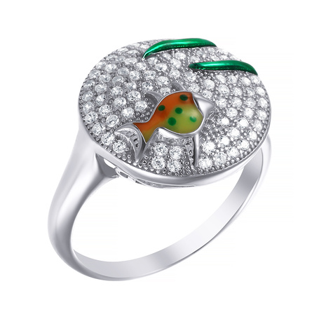 Кольцо из серебра 925 пробы с эмалью и фианитами рыбка