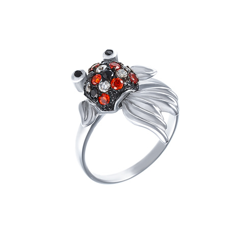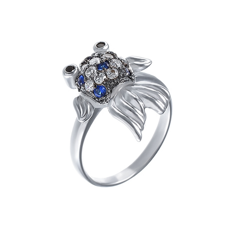 Кольцо из серебра 925 пробы с фианитами рыбка