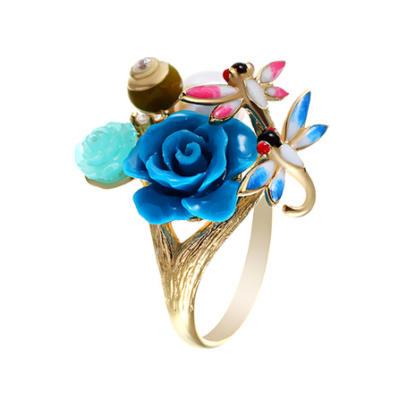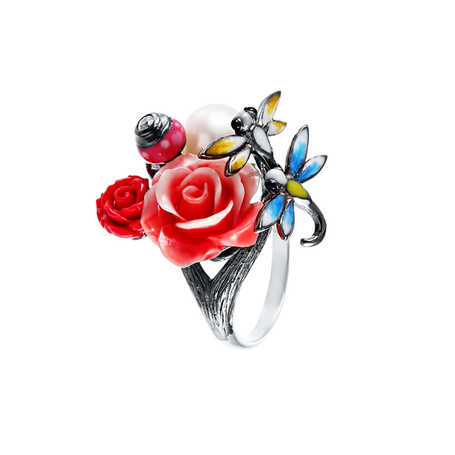 Кольцо из серебра 925 пробы с жемчугом, силиконом, эмалью и фианитами