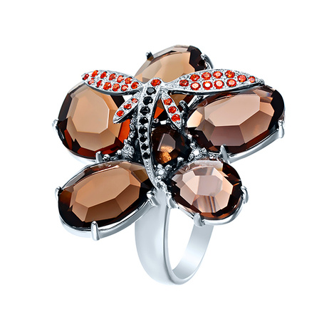 Кольцо из серебра 925 пробы с раухтопазами и фианитами
